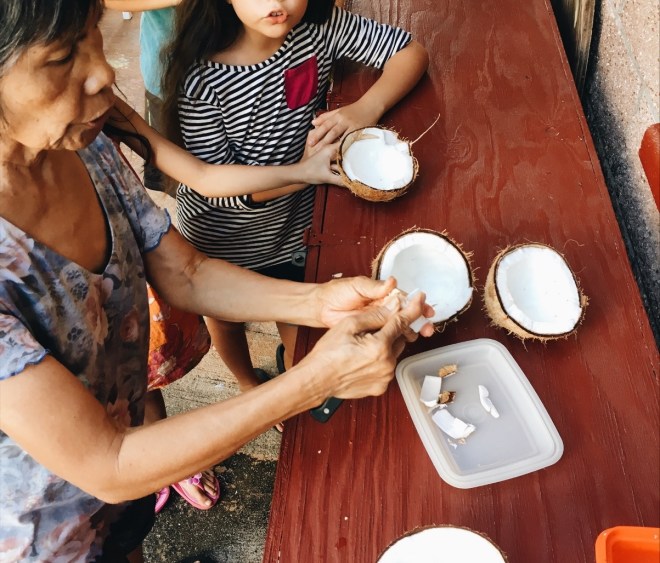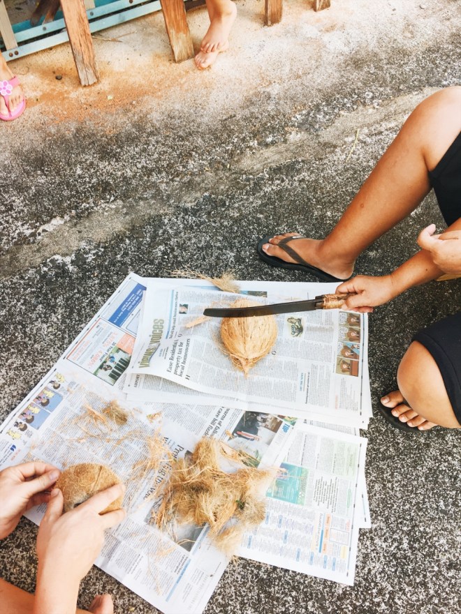 I’ve watched it go down millions of times, but it’s always good to get a refresher and during our recent trip, Auntie gathered us around and demonstrated the fine art of coconut cracking.