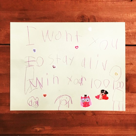 2) The girls made Get Well Soon cards for Sam and we taped them to his little display board by his food and water dishes. Translation: I want you to stay alive when you’re 100.