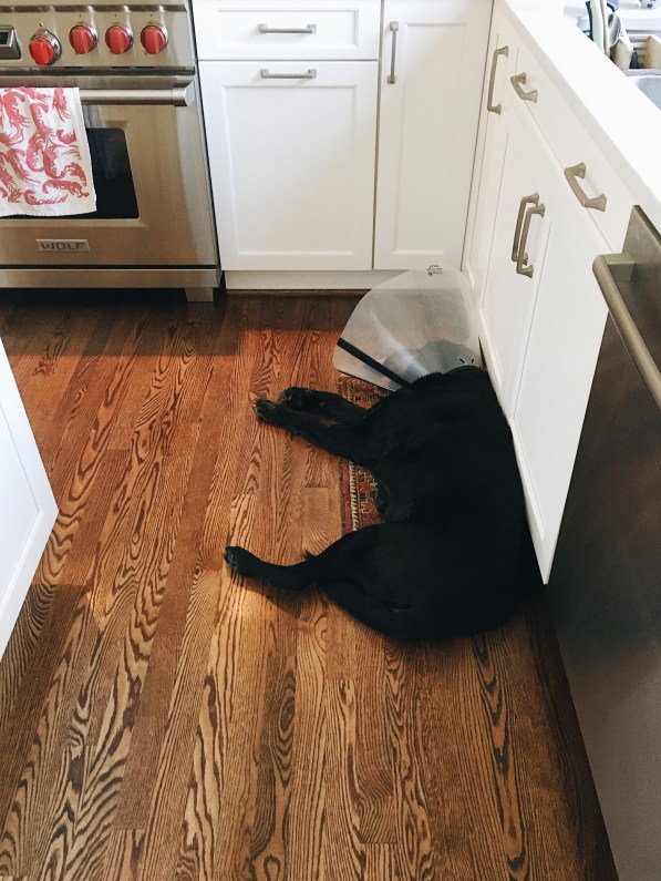 1) Our dog Sam had surgery to get rid of cancer in his jaw bone. Half of his lower jaw is now completely gone, and as a result of surgery (Can’t remember specifics. Fatty tissue something or other), his left eye has rolled back into his head. So although he now looks super crazy, he’s still our good, sweet boy and we love him.