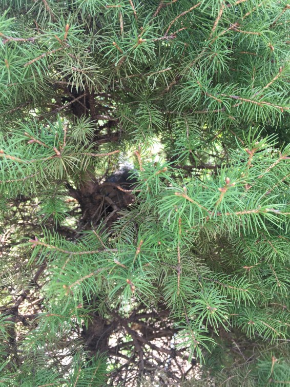 12) Every year birds nest somewhere in the yard. We’ve already had several baby doves hatch. One momma made her nest in our little evergreen out back. The nest was at my eye level, so it was easy to peek in on her.