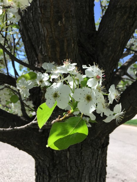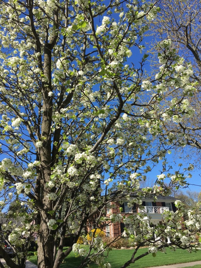 1) There are a ton of flowering pear trees, I believe also called Bradford pear trees (?) in Grosse Pointe. They are really stinky – not sure what smells exactly, the blossoms? – but so pretty. They have a bad rap as being weak (we lost a huge portion of the one in front of our house in a storm right before we moved in), and possibly considered an invasive species? You’ll have to look this one up yourself. No time for research this week!