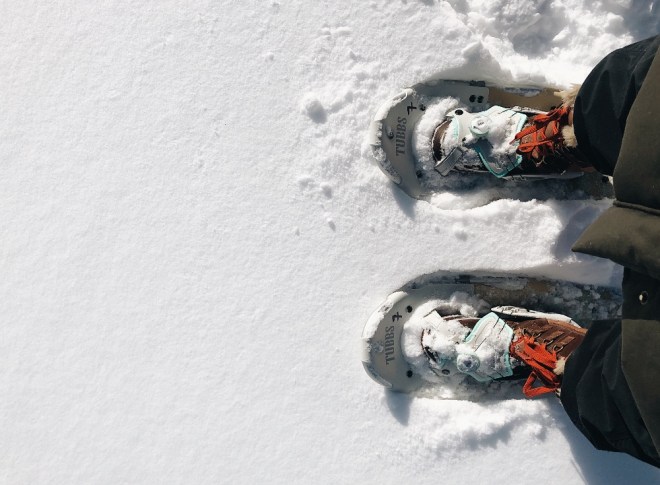2) I skipped skiing (I really don’t ski. I tried a couple times when we visited my Dad in Europe when I was in middle school and I ended up breaking my leg on the Swiss Alps. There are worse ways and places to break one’s leg, I know) and tried snow shoeing for the first time instead.