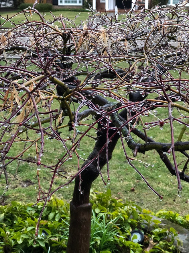 Here’s another maple that I now call Old Man Maple ever since I snapped this photo. He’s ancient with a huge trunk and oh soooo tall. He will do some serious damage if he ever falls. He’s sitting somewhat in the middle of our yard and I’m sure I have mentioned this before, but my husband is in favor of cutting him down. Now what kind of juju do you think will befall us if we cut this thing down!? I’m not going to find out.