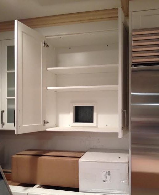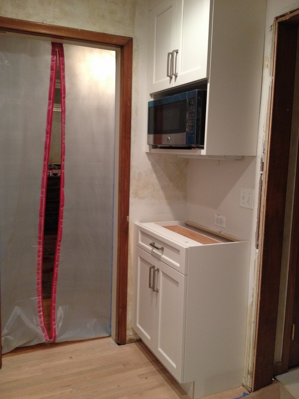 All appliances were replaced. We kept the location of the fridge (but changed it to a french door style for easier use), but moved the range and oven location. We installed a small microwave on the back cabinet area to keep it out of the way. We removed the swinging door that separated the kitchen from the dining room.