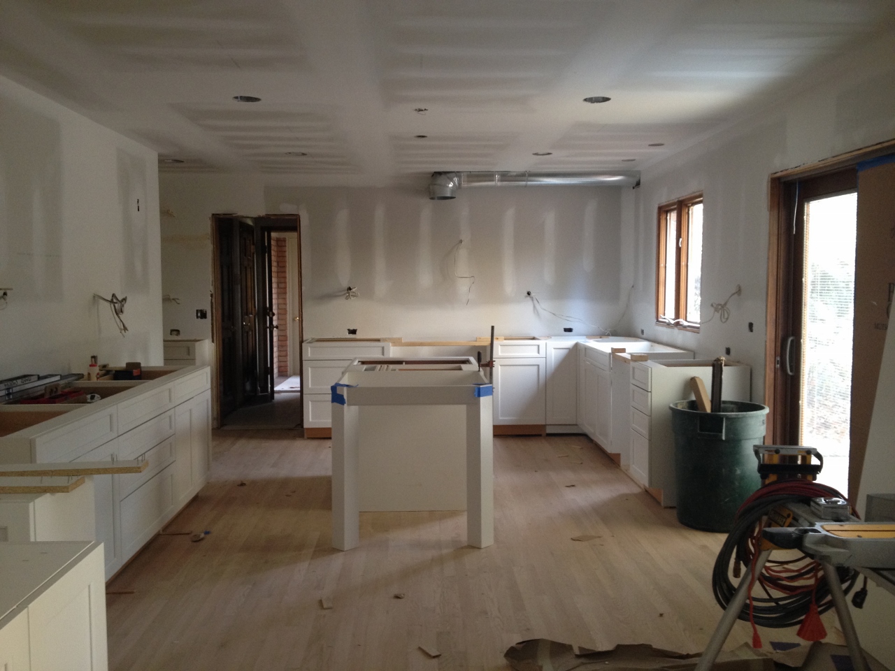 Being displaced from half of the house was/is really not that bad. We still had our morning (and afternoon) coffee, still had a usable sink (albeit the smallest sink you’ve ever seen) and other conveniences like a microwave and fridge. But I say “was/is” because even though we’re finally allowed in there (floors were finished Monday), I still feel like I can’t actually start using it, because the painters start up again in a couple days.