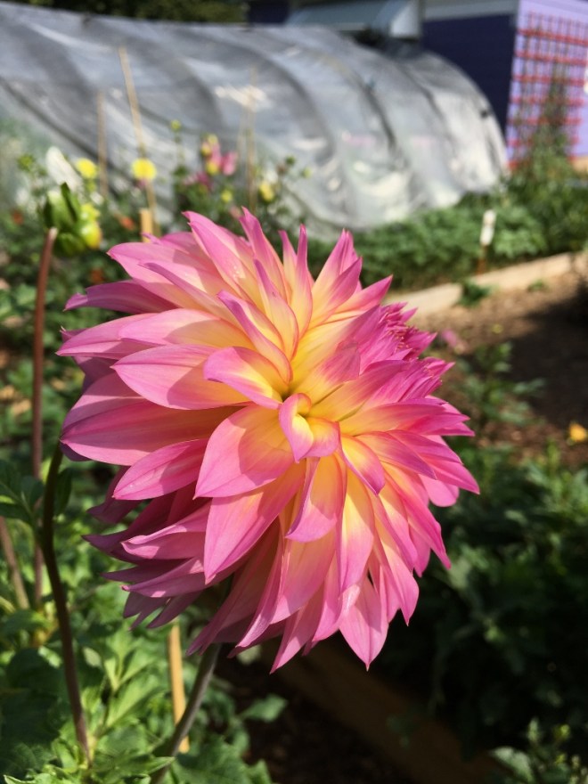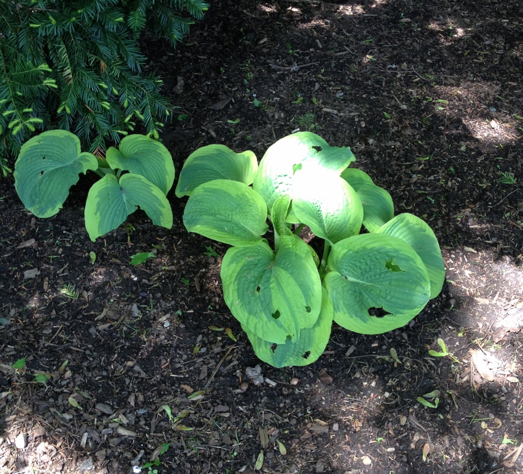 Some, however, got nibbled on by bunnies or aren’t getting enough sun and aren’t going to make it. I haven’t cut the plants down on these because you aren’t supposed to take the tubers out of the ground until late fall, early winter, and if I cut the plant down, I won’t know exactly where to dig, even with a marker.