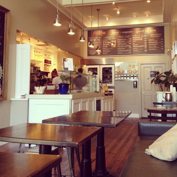 I was pretty spoiled in San Francisco in that regard. The city has an abundance of independent cafes to choose from, many of which are snooty about their bean varieties (which, although annoying, does make for a good brew). It’s unusual for a restaurant not to offer espresso drinks, and you can often get your cappuccino fix at non-coffee establishments. For example, Fraiche, the frozen yogurt shop, offers the highly regarded Blue Bottle coffee (Oakland), along side their organic yogurt, homemade bread and chocolate chip cookies.