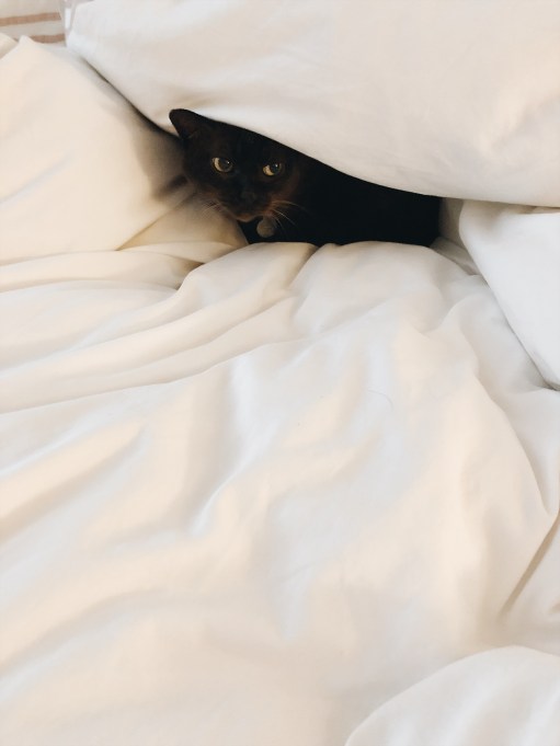 Needless to say, by day seven, the cat was sleeping with me under the covers, next to my chest and sometimes my stomach, every night.