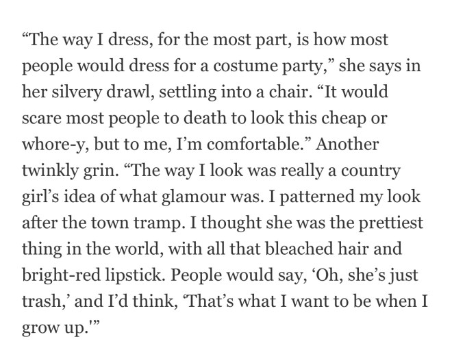 6) My girlfriend Ingrid often sends me snippets of inspiration via text or messaging, and this month I got a Dolly Parton meme. I love Dolly so much and it prompted me to look up my favorite story of hers that I once heard on the radio. I found a similar story/quote (above) in a Rolling Stones article. It speaks for itself. She is amazing and will not let anyone tell her differently. #notworthy