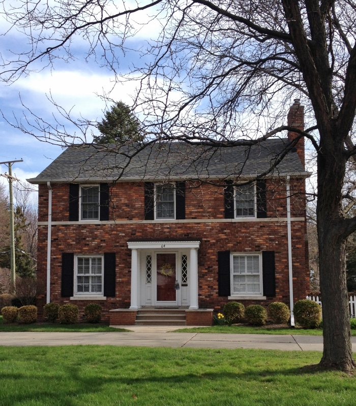The house was built in 1960 and is 3248 square feet. Its exterior is traditional Midwestern brick, with painted shutters and a weathervane over the garage. It is located in the city of Grosse Pointe Farms and is walking distance to a small shopping district. It’s also super close to Lake St. Clair, a huge plus for us. We both love being near the water (in fact one of our criteria for moving out of San Francisco was that we had to move somewhere that was close to a large body of water).