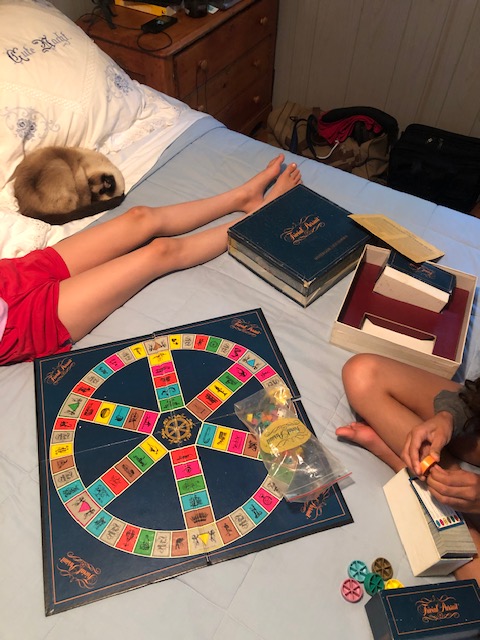 10) The girls swam and played vintage board games (at least for a few minutes before they started making up their own questions and rules) and learned how to shoot a bb gun, and we ate well and fished (although we didn’t eat the fish we caught – the were all too small) and drank wine and tequila (me) and bourbon (him).
