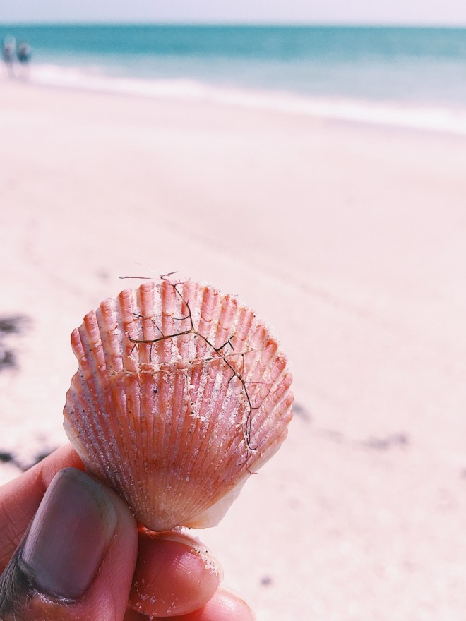6) I spent some time alone, walking along the shore, looking at and collecting shells for the girls. The sand was powdery white.