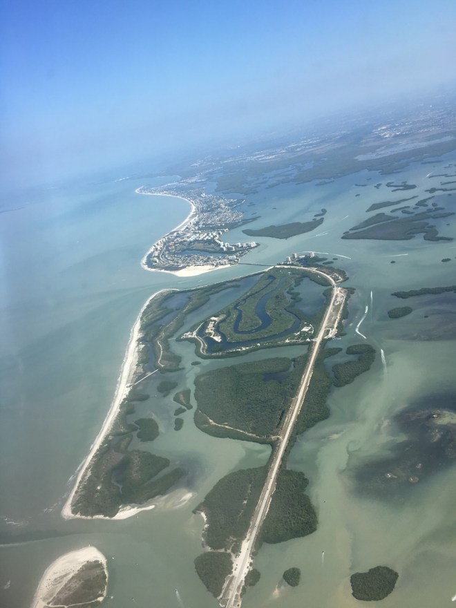2) Even though I need to be medicated to fly, I love looking down at the landscape on takeoff and landing. It was neat seeing the little channels/outlets (don’t even school me on the terms, I will not remember) and it reminded me of all the books and movies set in the Florida everglades (which I’d love to explore on another trip).